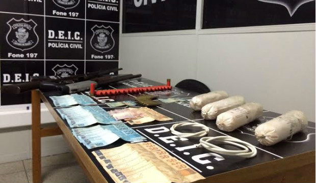 Em uma residência situada em Anápolis, que servia como “paiol” para a quadrilha, os agentes apreenderam explosivos, armas de fogo e munições. A organização criminosa é investigada por explosões de caixas eletrônicos na cidade Pontalina, Acreúna, Orizona, Caldazinha, Vianópolis, Edeia, Campo Alegre de Goiás e Itaguaru.