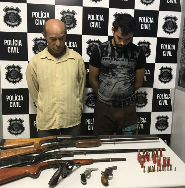 Policiais civis de Itumbiara, coordenados pelo delegado Vinícius Castro Penna, prenderam, no dia 5 de junho, Antônio Cunha de Souza, de 49 anos, e Dionatan de Souza, de 22 anos, por posse ilegal de arma de fogo e munições. Durante ação visando o combate a crimes da Lei nº 10.826/03 (Estatuto do Desarmamento), eles foram flagrados com sete armas de fogo.