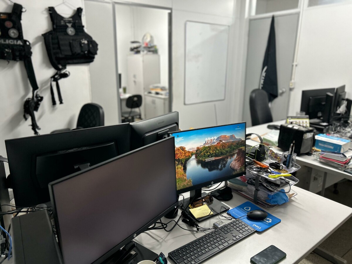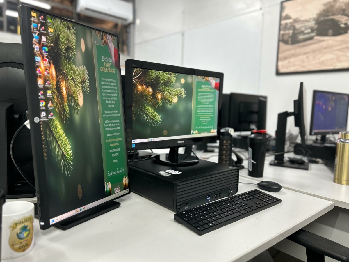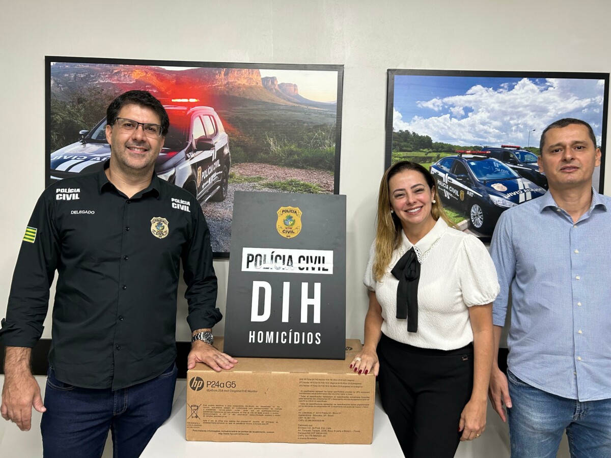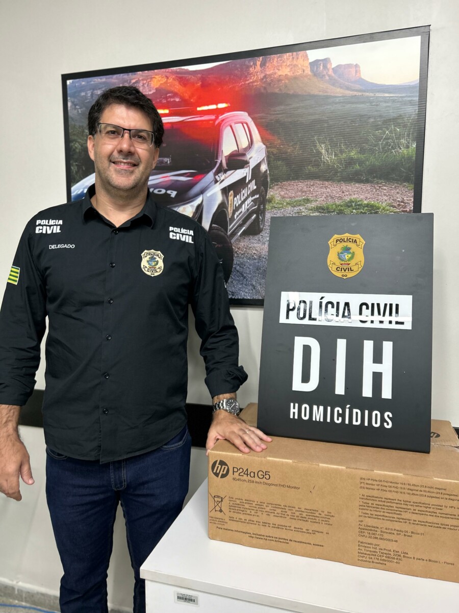A Polícia Civil de Goiás, por meio da Superintendência de Gestão Integrada (SGI), entregou hoje (09) à Delegacia Estadual de Investigações de Homicídios (DIH) 35 novos computadores com tela dupla, de alta tecnologia, bastante modernos e que serão essenciais para dar ainda mais agilidade e eficiência aos trabalhos dos policiais civis que investigam os crimes contra a vida. A entrega foi realizada na DIH pela titular da SGI, delegada Renata Cheim, e pelo Gerente de Assessoria Setorial da SGI, Germano Cesar de Castro Melo. Os equipamentos foram recebidos pelo titular da DIH, Maurício Passerini, e já instalados para operação.