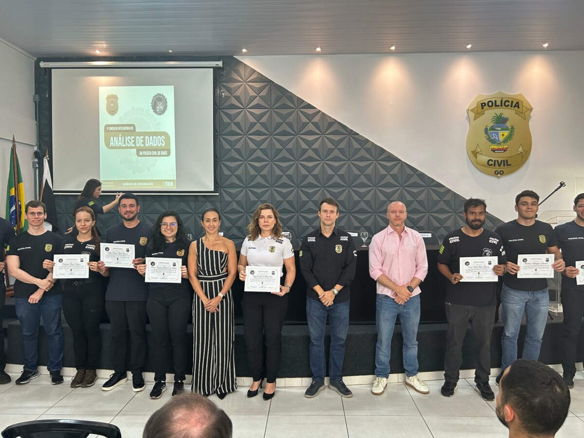 A Polícia Civil de Goiás realizou, na tarde desta sexta-feira (13), o encerramento do 1º Curso de Inteligência de Análise de Dados (CIAD). Foram formados um total de 50 policiais civis. O curso aborda temas como afastamento de sigilo bancário e telefônico, criptoativo e extração de dados, entre outros temas. A cerimônia de finalização do curso ocorreu na Escola Superior da Polícia Civil (ESPC), com a presença do Chefe de Polícia Judiciária, Marcelo Aires; diretora da ESPC, Tatyane Cruvinel; do superintendente de Inteligência Policial Civil, Gustavo Rigo, do Gerente de Inteligência de Sinais e Laboratório de Tecnologia Contra a Lavagem de Dinheiro, Vytautas Zumas, além de outras autoridades e dos policiais que receberam o certificado do curso.
