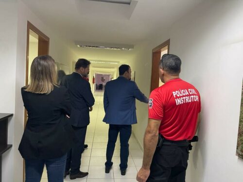 A cúpula da Secretaria de Segurança Pública de Goiás esteve hoje (07/6), em visita durante a tarde, à sede da Escola Superior da Polícia Civil (ESPC). A visita do secretário Renato Brum e do subsecretário Deusny Silva Filho foi acompanhada pelo Delegado-Geral da Polícia Civil, Alexandre Lourenço, e pelo diretor da ESPC, Daniel Adorni.