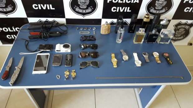 Na casa do investigado, no Setor Wilson Vaz, foram apreendidos diversos objetos sem procedência confirmada, supostamente provenientes de furtos. Entre eles estão aparelhos celulares, aparelho de televisão led, aparelhagens de som, videogames, DVDs, pares de tênis, bijuterias, bicicletas e outros itens. As vítimas que reconhecerem seus objetos devem procurar a Delegacia de Polícia. Estão em andamento outras ações visando capturar os demais responsáveis pelos furtos na cidade.